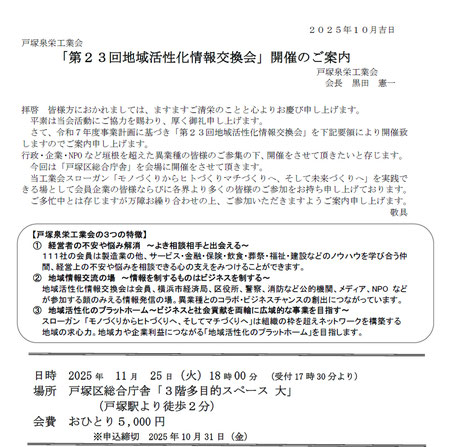 この度、「とつか夏まつり2025」開催に向け、「とつか夏まつり実行委員会」よりご協賛の依頼が参りましたのでご案内申し上げます。